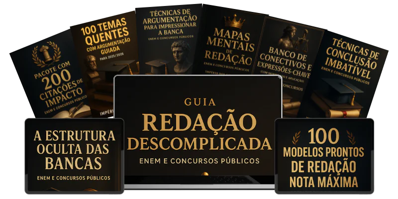 O Guia Redação Descomplicada é o seu atalho direto para impressionar a banca e tirar notas máximas em qualquer concurso e também no ENEM.